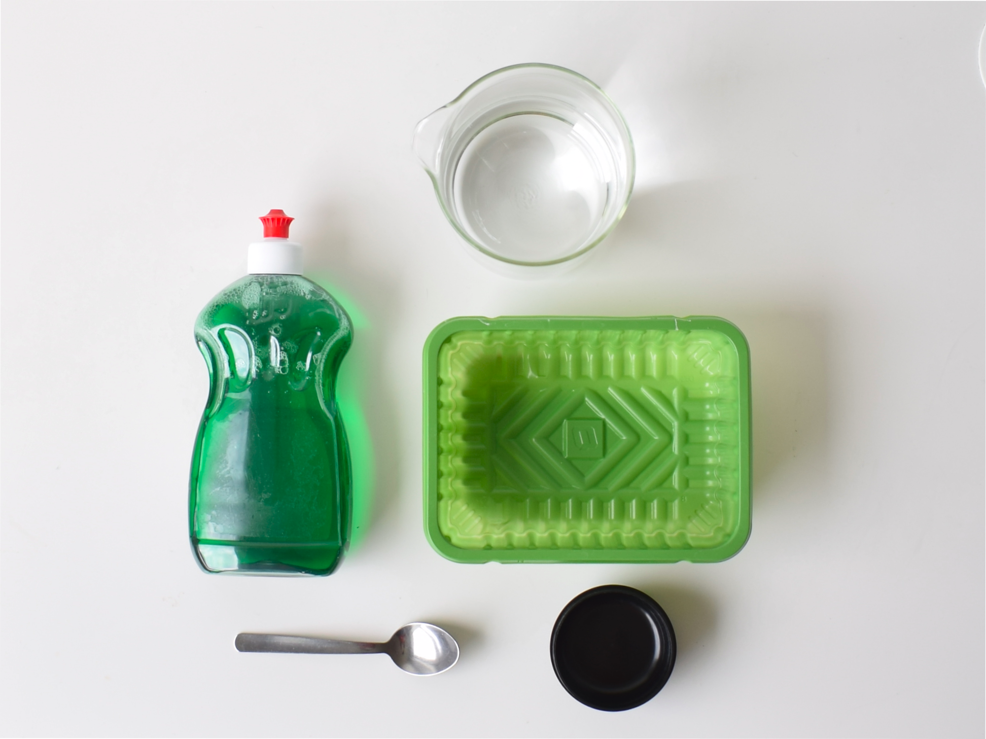 Стави вода во длабокиот сад и додаj неколку капки детергент за миење садови. Промешај.